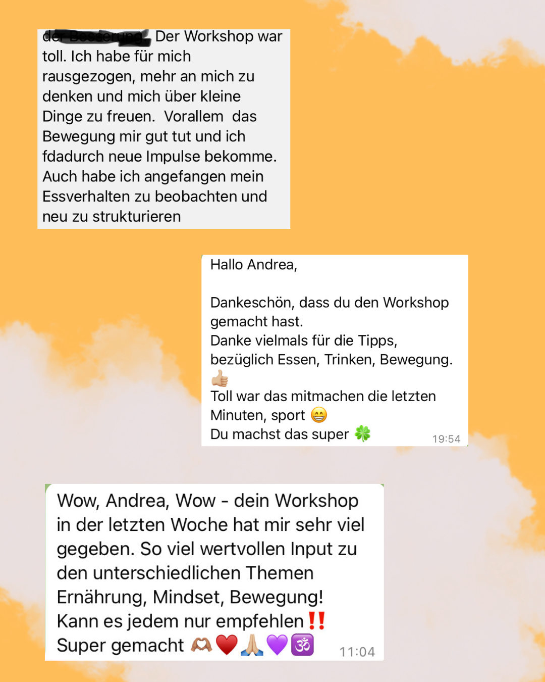 Der Workshop findet live via Zoom statt. Nach deiner Anmeldung erhältst du alle wichtigen Infos und Zugangslinks per E-Mail und auf Wunsch auch via WhatsApp – so bist du bestens vorbereitet und verpasst garantiert nichts.